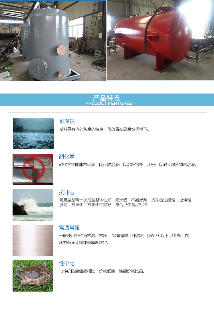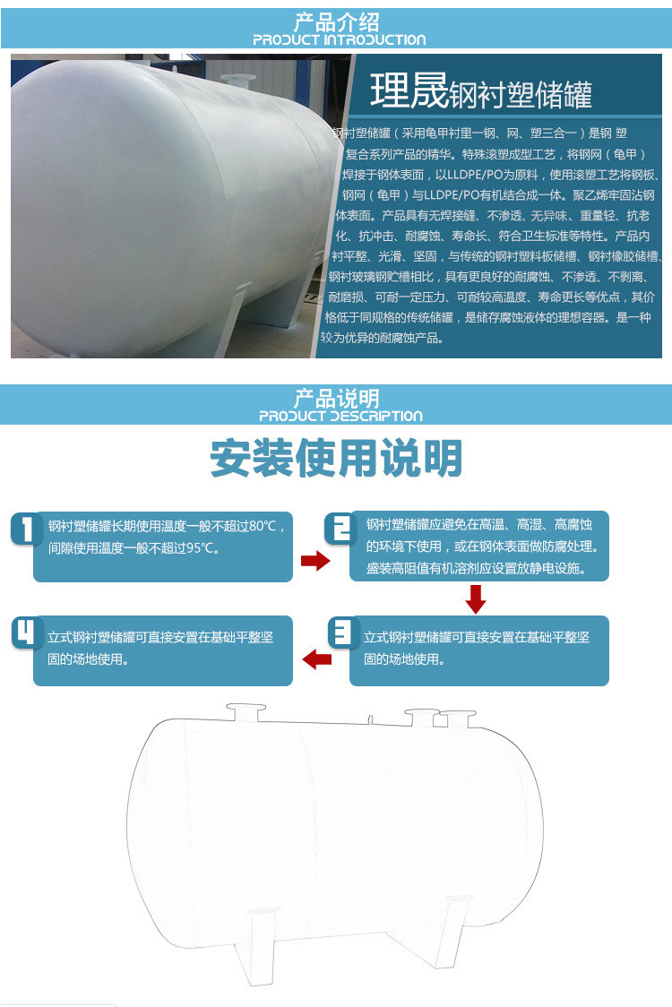 10、鋼襯塑PE/po儲(chǔ)罐,應(yīng)避免在高溫、高濕、高腐蝕的環(huán)境下使用。