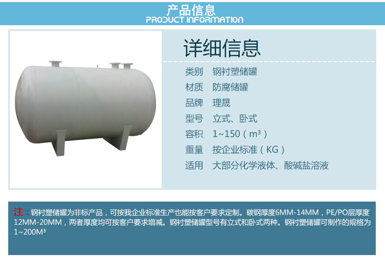 14、加厚的特殊鋼襯塑PE/PO儲(chǔ)罐,可耐規(guī)定的壓力和真空。
