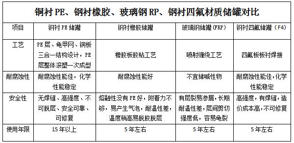 12、全塑PE儲(chǔ)罐或鋼襯塑PE/PO儲(chǔ)罐可盛裝的化學(xué)品非常廣泛,可用于無機(jī)酸、有機(jī)酸、無機(jī)堿、有機(jī)堿和有機(jī)化合物。但不宜盛裝濃硫酸、濃硝酸等強(qiáng)氧化劑,能使PE溶脹的芳烴、鹵代芳烴等溶劑。